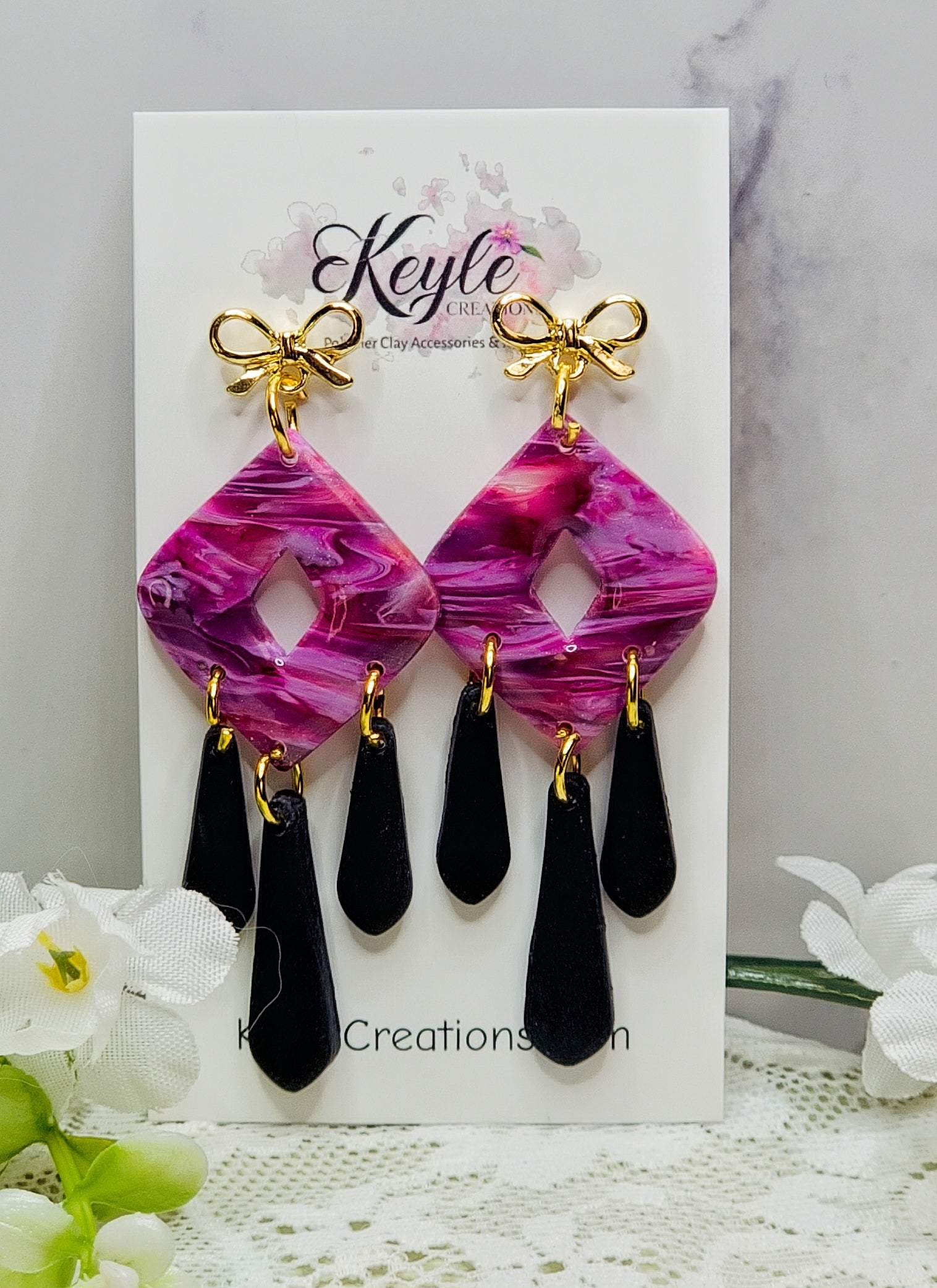 Care: Polymer clay is very durable but not indestructible. Earrings should not be worn in the shower, bath, pool or any body of water. You can clean them with soap and water, but do not soak. Do not use rubbing alcohol on the clay piece itself but can be used to clean the hardware. When putting them away, you should hang them in a jewelry box or put them in a small separate bag as metal pieces can scratch the clay.
